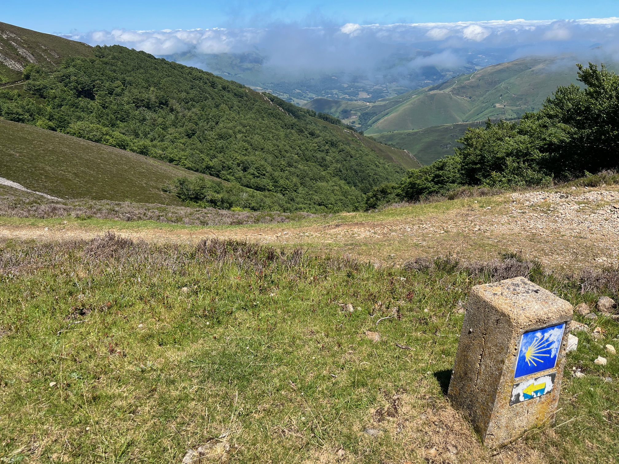 From the top, we are rewarded with stunning views down into Spain, the destination of Santiago de Compostela still a long way off for those starting out on the path today.